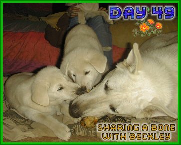 Enjoying a bone with big brother Beckley he is always so kind and gentle with these guys.